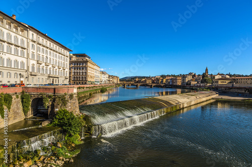 Fototapeta premium Florence, Italy. Picturesque landscape with a dam on the river Arno