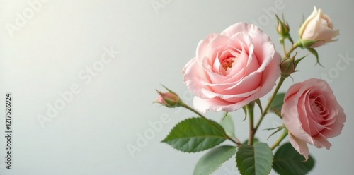 © anulak, Naklejka premium Florero de vidrio con rosas blancas secas en un ambiente, blanco, decoracion