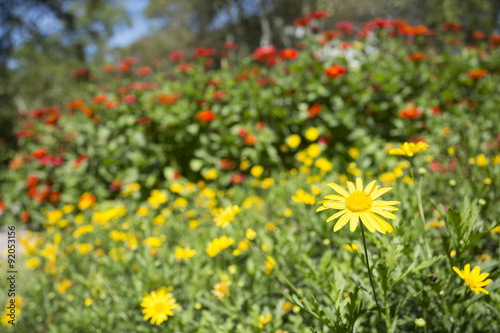 © Luis Echeverri Urrea, Obraz premium Flores margaritas amarillas en el campo