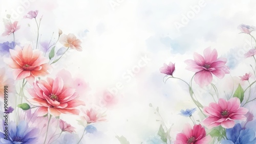 Fototapeta premium flores pintadas en acuarela sobre fondo blanco con textura