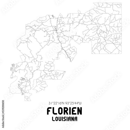 Naklejka premium Florien Louisiana. US street map with black and white lines.
