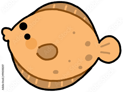 © JIRACHAYA, Fototapeta premium Flounder hand-drawn Sea Animals Cute Character Clip Art Doodle Cartoon Transparent Background
