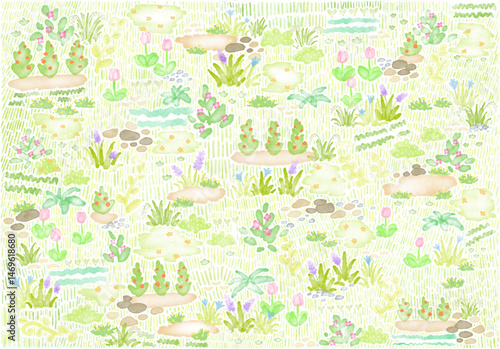 © byram, Obraz premium Flower and grasses seamless pattern stock. Spring summer floral field background