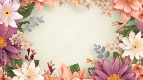 Fototapeta premium Flower background with copy space. Floral frame. Vector illustration. Generated AI