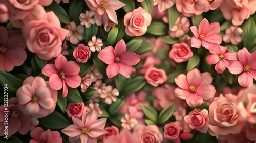 © Irina, Naklejka premium Flower bed with spring flowers composition background