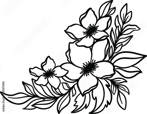 Fototapeta premium Flower blossom vector illustration, Floral branch silhouette, Garden spring flowers simple sketch element, Floral wreath border