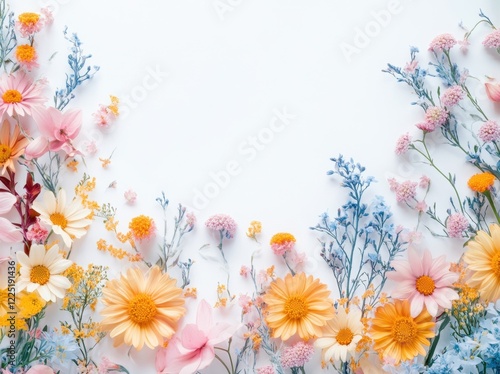 © Aleksei, Naklejka premium flower border with Aster on a white background, with space for text or design