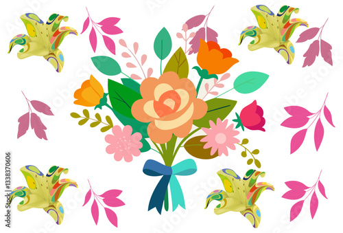© designing ocean, Obraz premium Flower Bouquet Concept Illustration Stylish and Beautiful