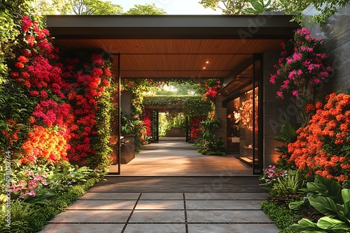 © Indronath, Fototapeta premium Flower covered pathway with tropical plants high resolution picture