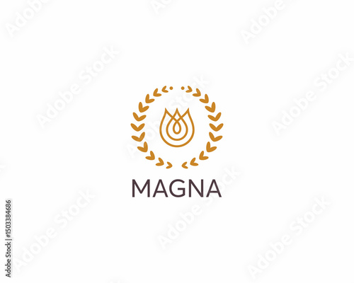 © iamguru, Fototapeta premium Flower emblem. Unusual water drop icon logo. Universal tulip spa cosmetics logotype. illustration.