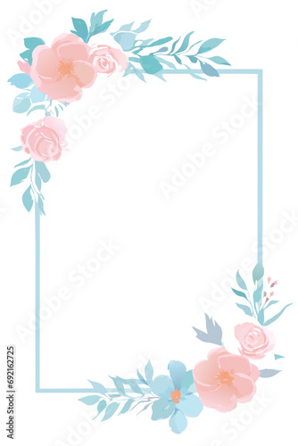 © donwi, Naklejka premium Flower Frame Watercolor. Floral Wreath Watercolor.