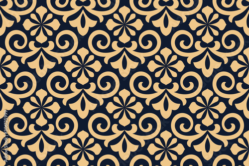 Fototapeta premium Flower geometric pattern. Seamless vector background. Gold and dark blue...