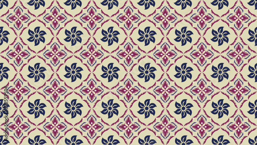 © penpirab, Fototapeta premium Flower geometric seamless pattern on light yellow background