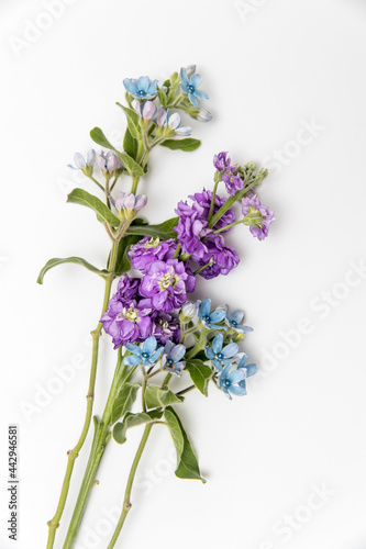 © elenarostunova, Fototapeta premium Flower hackelia velutina and Matthiola incana isolated on white background.