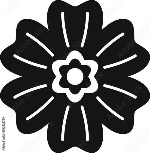 © anatolir, Obraz premium Flower icon featuring petals and stamen in a simple botanical outline