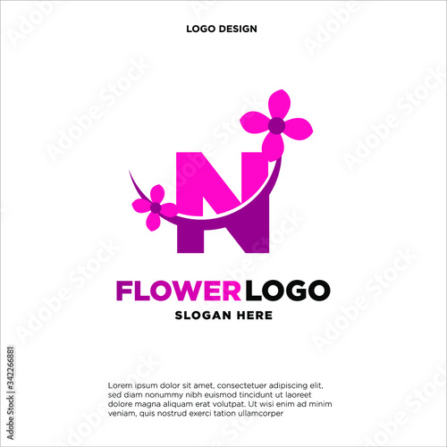 © Fazdesign.id, Obraz premium flower initial Letter N Logo design