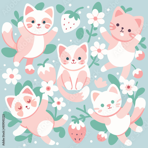 Obraz premium flower kitten,flower kitten, kitten, background, pattern, seamless, vector
