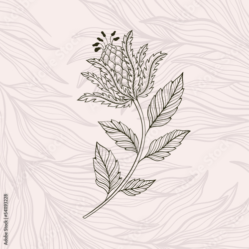 Naklejka premium Flower line hand drawn style. One object vintage design. Elegant plant...