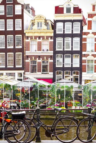 © arkanto, Fototapeta premium Flower market in Amsterdam (Bloemenmarkt) and bicycles