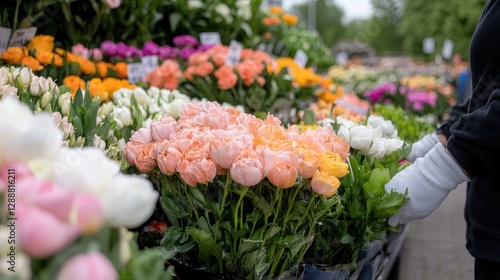 © MAKASIHMAS SIDNEY, Fototapeta premium Flower Market Vendor Arranging Peach Colored Roses