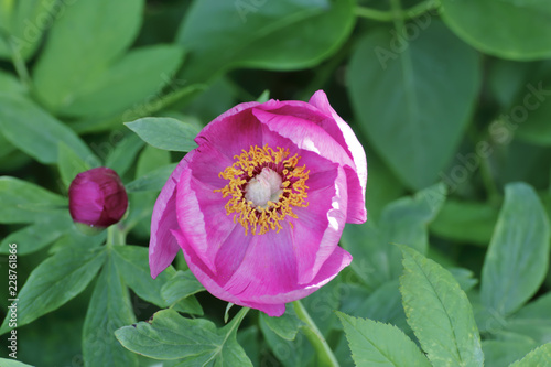 © Greg Mailaender, Naklejka premium Flower of a wild peony, Paeonia mascula, view into the blossom, Bavaria, Germany, Europe..