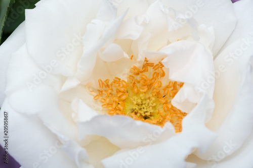 © IoaBal, Obraz premium Flower of white rose with yellow stamens