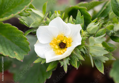 Obraz premium Flower on a strawberry in spring.
