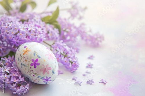 © Slepitssskaya, Fototapeta premium Flower painted Easter egg on lilac background