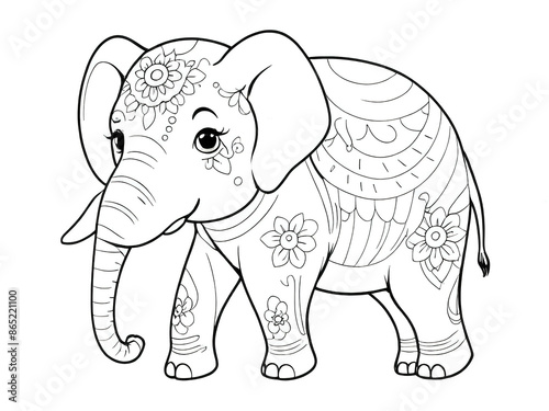 © Supharb, Naklejka premium Flower pattern elephant coloring book. Vector white background