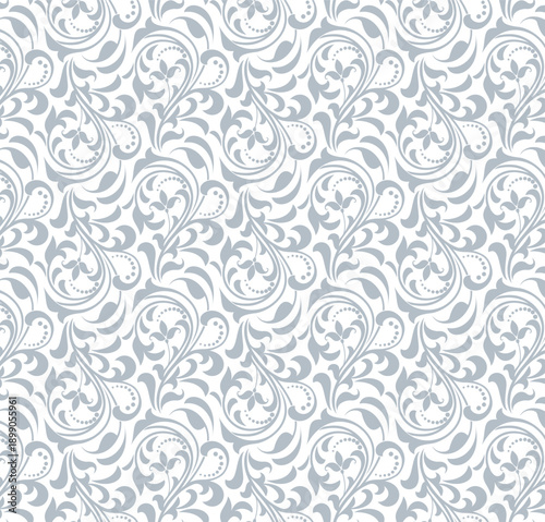 Fototapeta premium Flower pattern. Seamless white and gray ornament. Graphic vector background