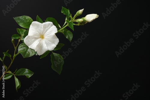 Obraz premium flower Photography, Jasminum sambac, full view object, copy space on right, Isolated on Black Background