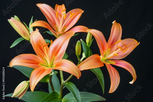 © Eyestetix Studio, Fototapeta premium flower Photography, Lilium orientalis, full view object, copy space on right, Isolated on Black Background