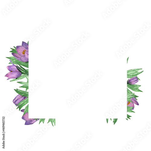 Obraz premium Flower.Pulsatilla patens.Square frame.Wildflowers frame.Hand-painted illustration.