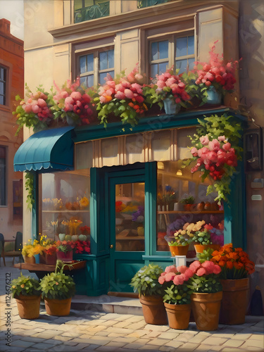 Fototapeta premium Flower Shop Oil Painting Illustration Art