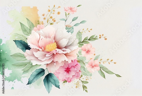 © 7AM, Naklejka premium Flower watercolor on white background. Generative AI