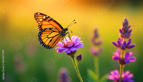© MostRuna, Fototapeta premium flower with butterfly , blur background