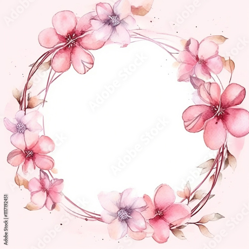 Fototapeta premium Flower wreath. Inspirational poster. Hand painted with watercolor.round frame...