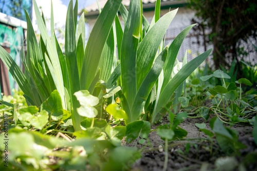 © Aleksandr, Obraz premium Flower young iris leaves green