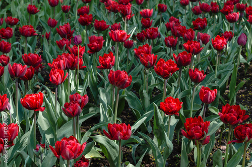 Obraz premium Flowerbed of red and pink tulips