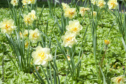 © Elena Noeva, Fototapeta premium Flowerbed with yellow narcissus