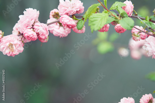 Fototapeta premium Flowering almond. Branch with pink flowers. Springtime