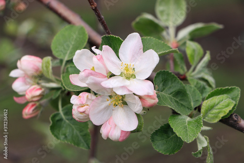 Fototapeta premium Flowering apple tree. Apple tree flowers close-up. Spring.