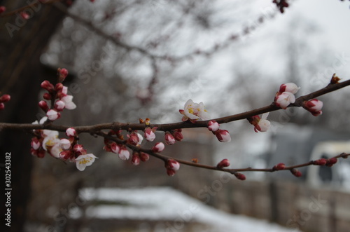 © Ирина Кусова, Obraz premium flowering apricot tree in early spring
