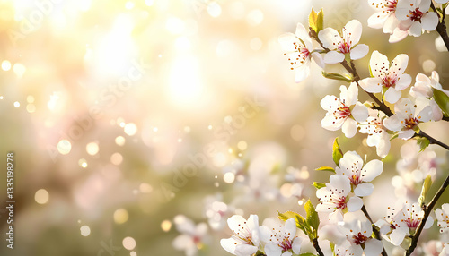 Fototapeta premium Flowering Branch with Bokeh Lights Creating a Dreamy Spring Backdrop