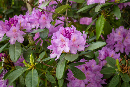 Obraz premium Flowering bush of pink rhododendron