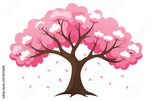 Fototapeta premium Flowering Cherry Tree with Pink Blooms on Transparent Background