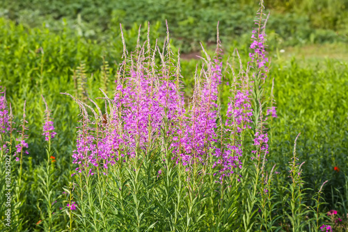 © pictures_for_you, Naklejka premium Flowering fireweed. Chamaenerion angustifolium medical plant.
