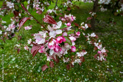 © slunicko24, Fototapeta premium Flowering flower and bud on apple tree in garden, spring.