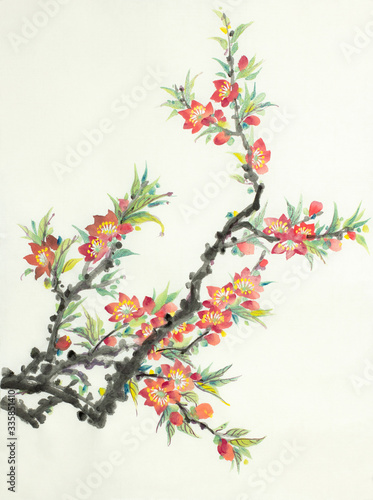 © hikolaj2, Fototapeta premium flowering peach branch