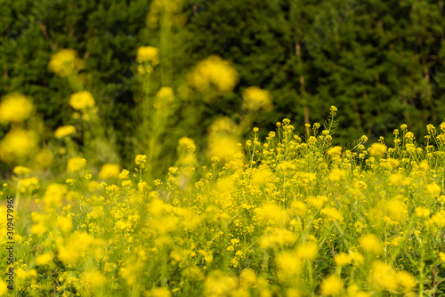 Fototapeta premium Flowering plants, Rape plant in spring against a nature background, Many yellow flowers